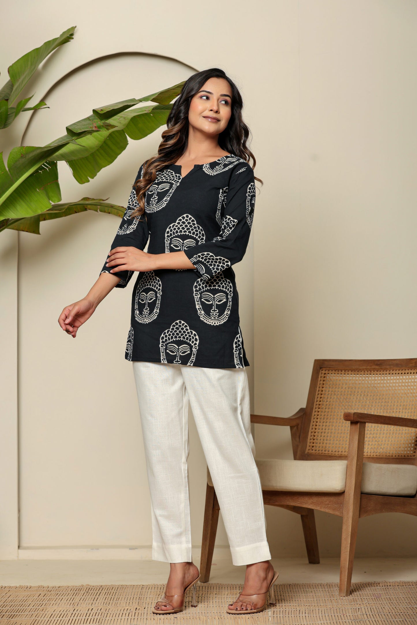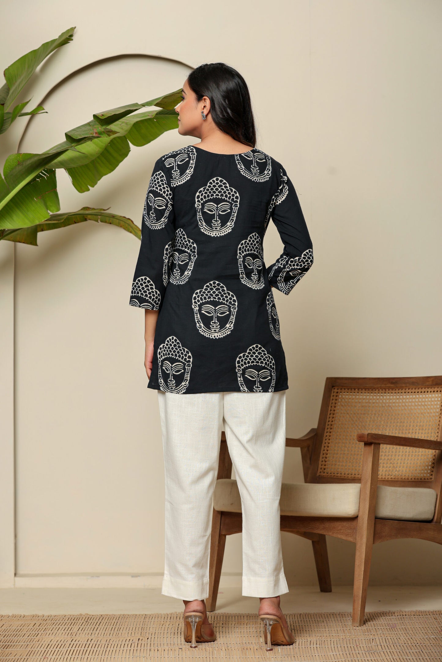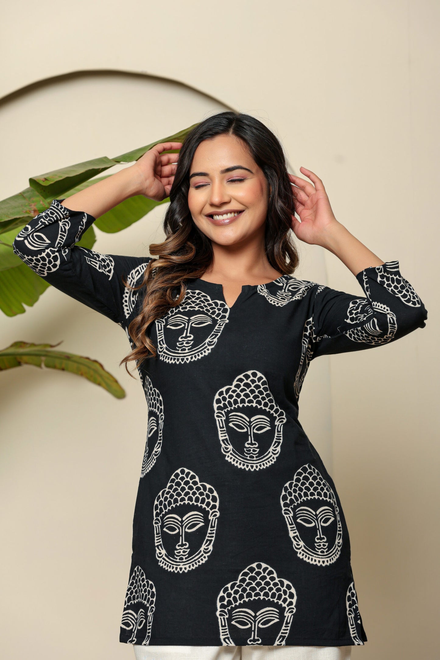 Hand Block Pure Cotton Black Buddha Kurti