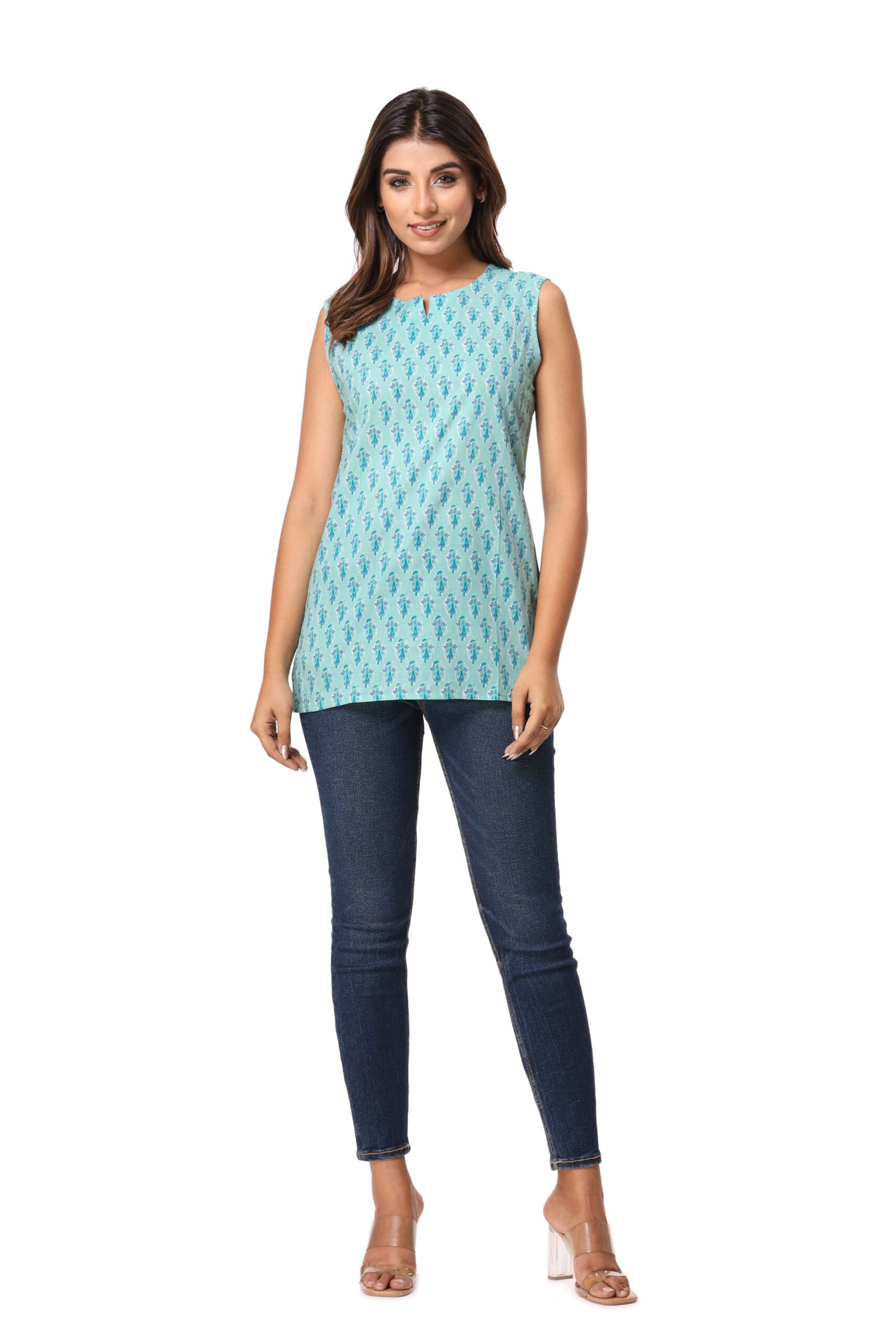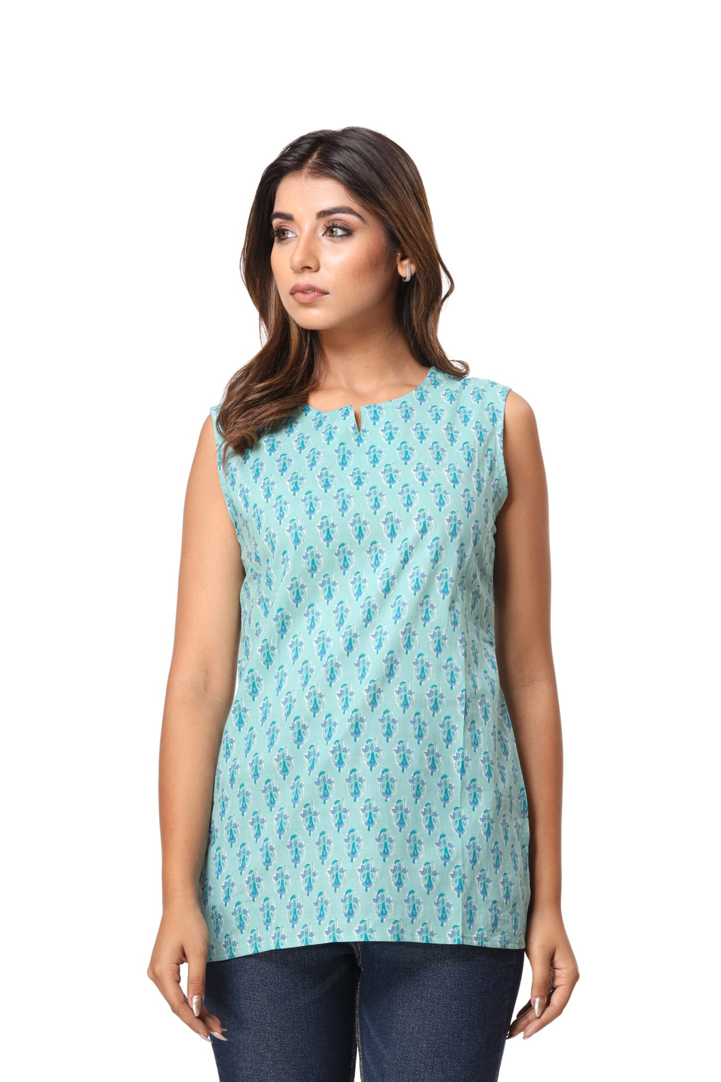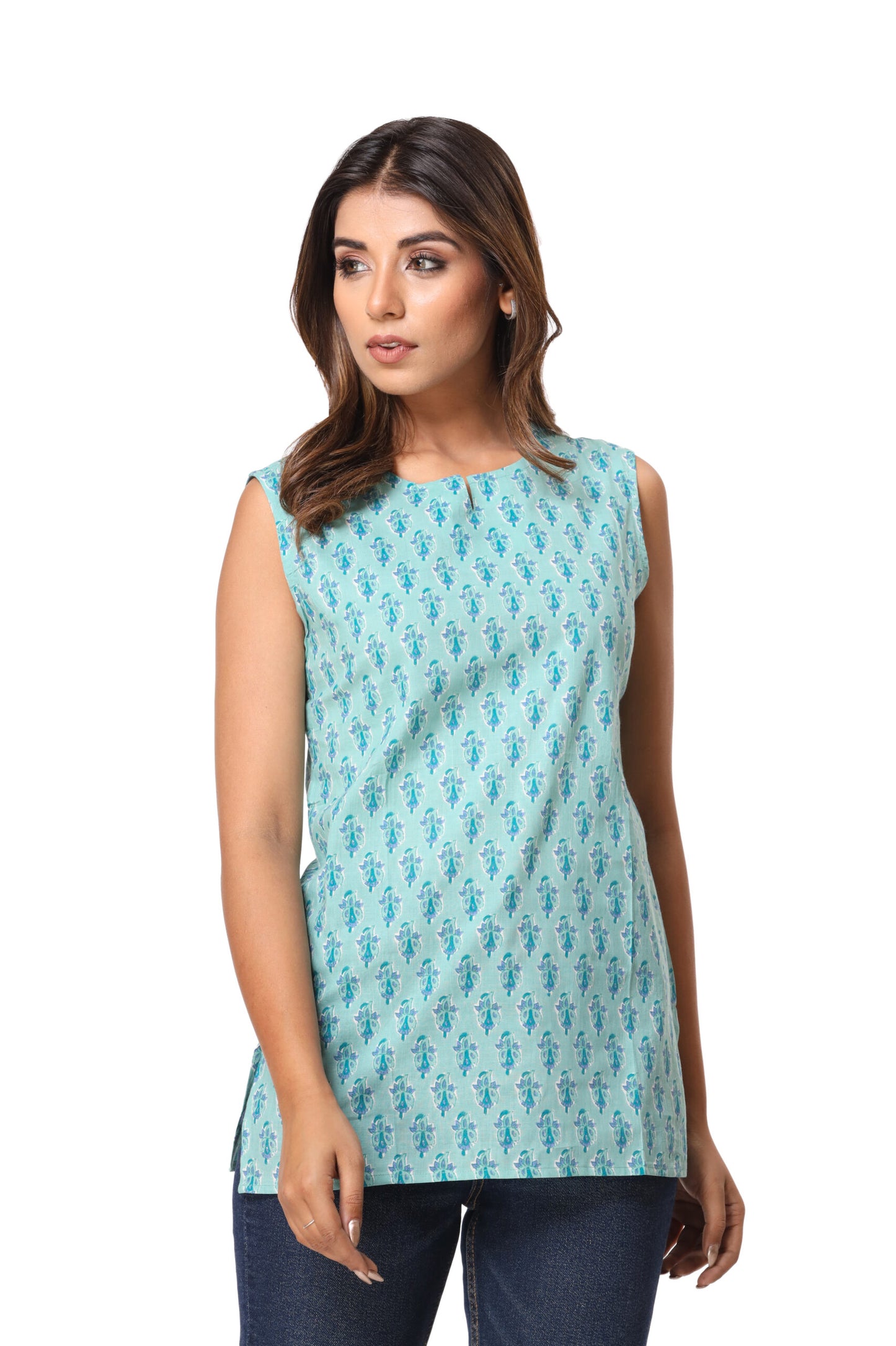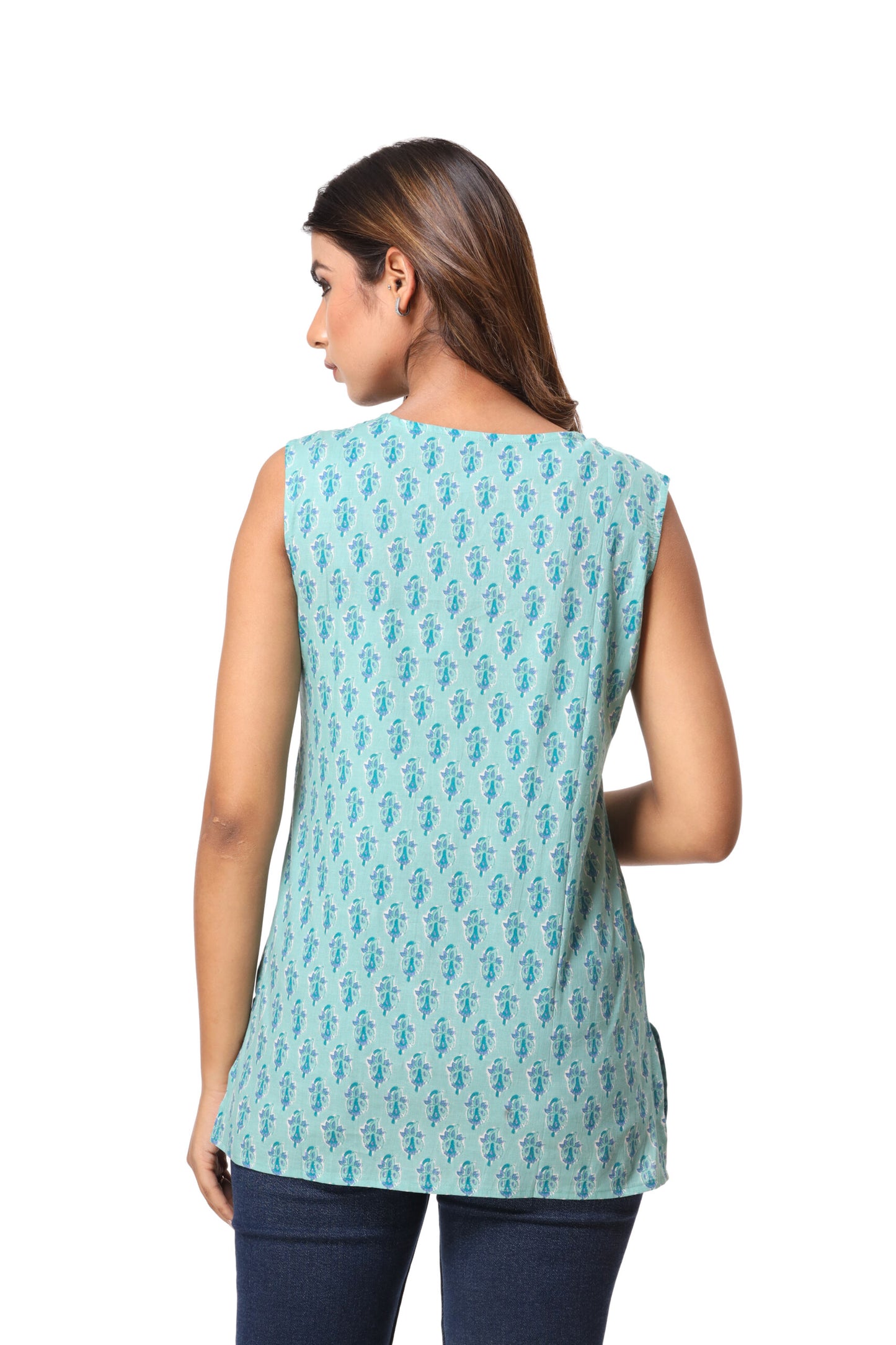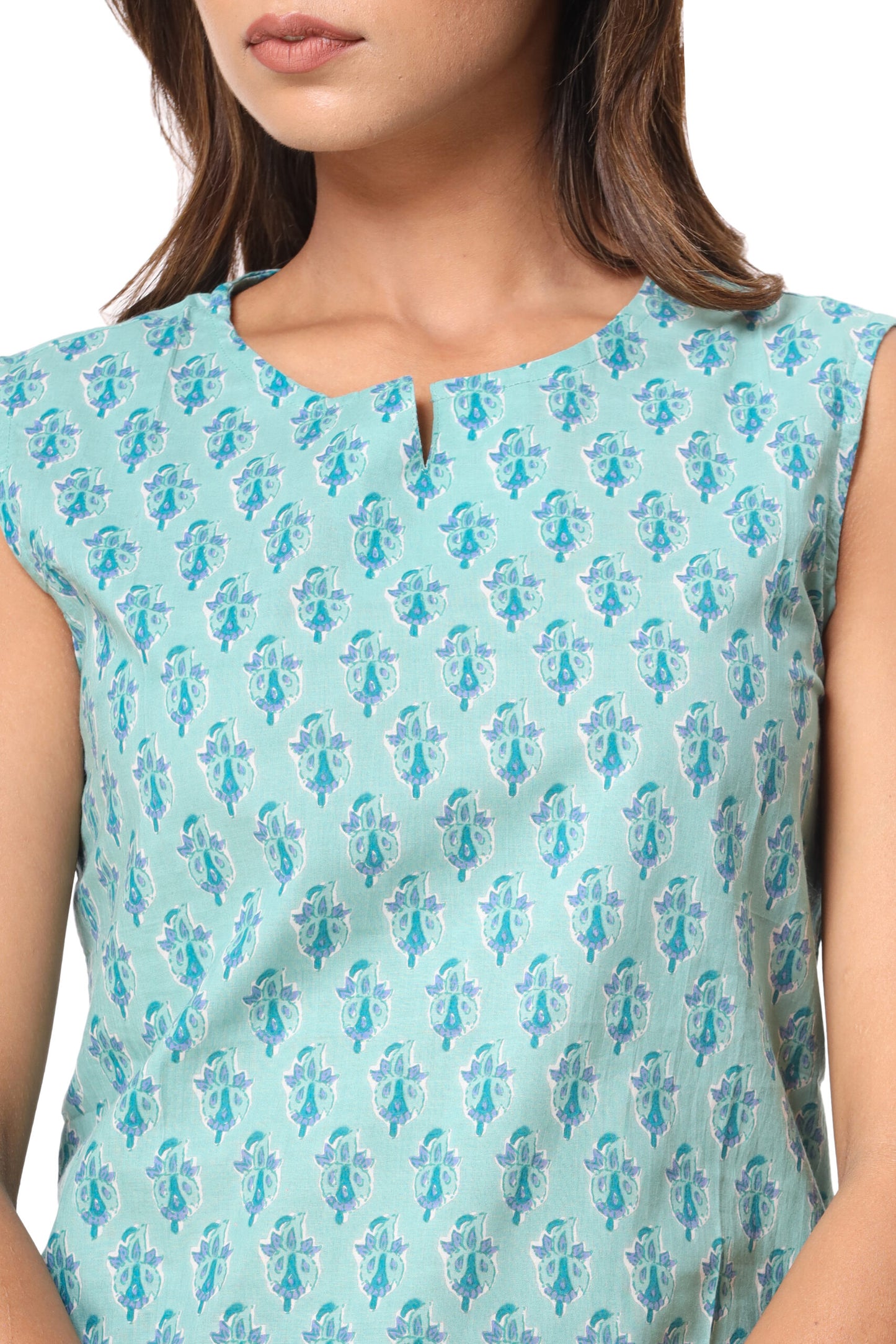 Jaipur Block Printed Begonia Sleeveless Pure Cotton Short Kurti