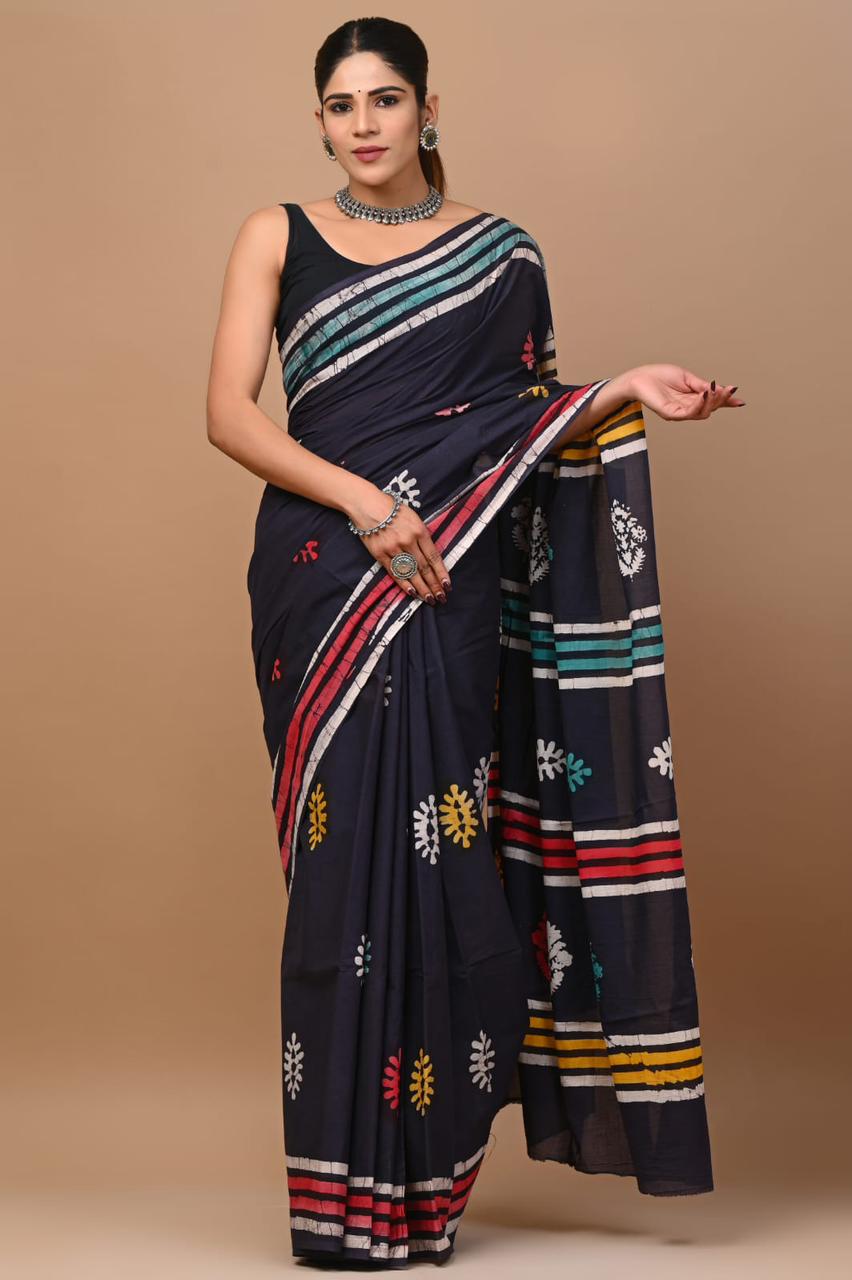 The traditional handblock print is done by artisans in bagru, Rajasthan. The saree is so light and comfortable to wear all day long, whether it's at work or house gatherings. This saree is best for gifting purposes. This is 5.5meter cotton saree. Quality Assured. No color bleeding and home washable. 1meter extra blouse.
