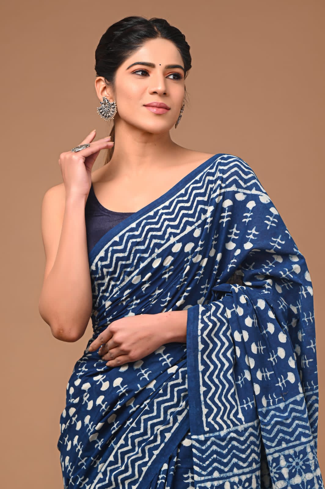 The traditional handblock print is done by artisans in bagru, Rajasthan. The saree is so light and comfortable to wear all day long, whether it's at work or house gatherings. This saree is best for gifting purposes. This is 5.5meter cotton saree. Quality Assured. No color bleeding and home washable.