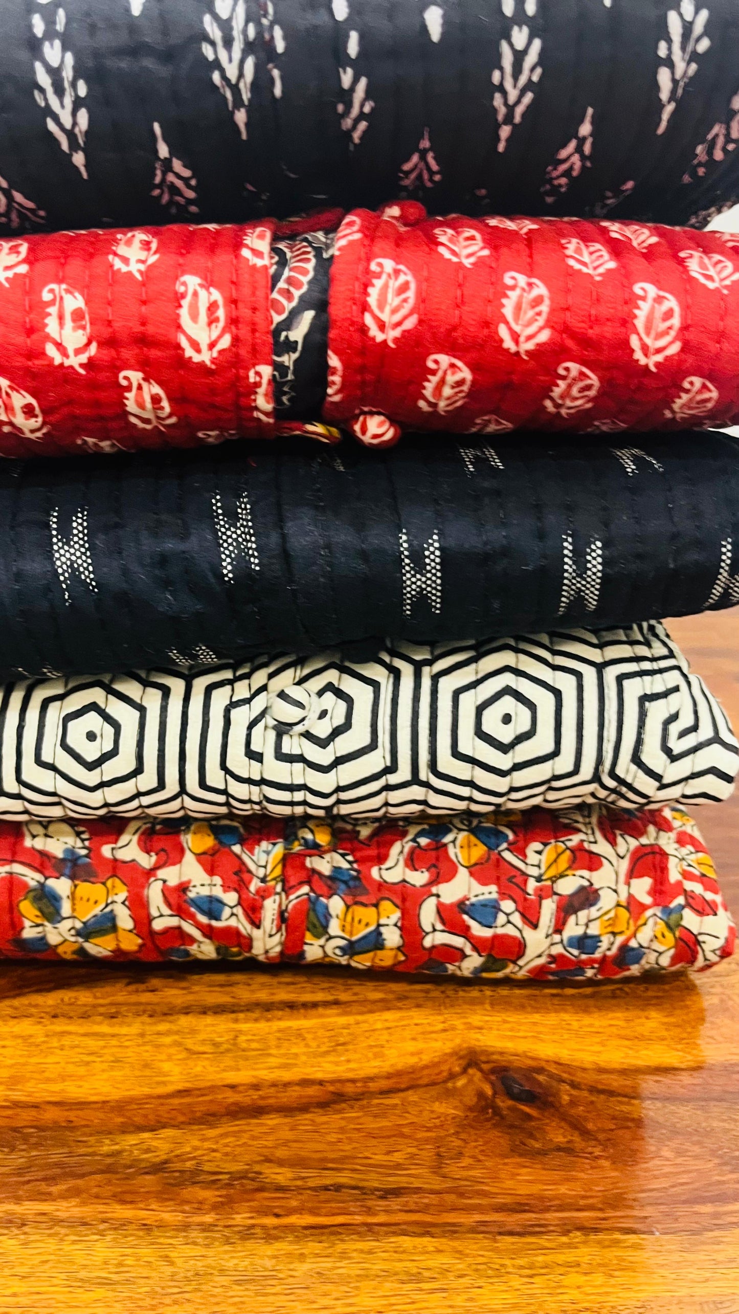 Cozy up this winter with our authentic Jaipuri Quilted Reversible Jackets! (Sleeveless)
