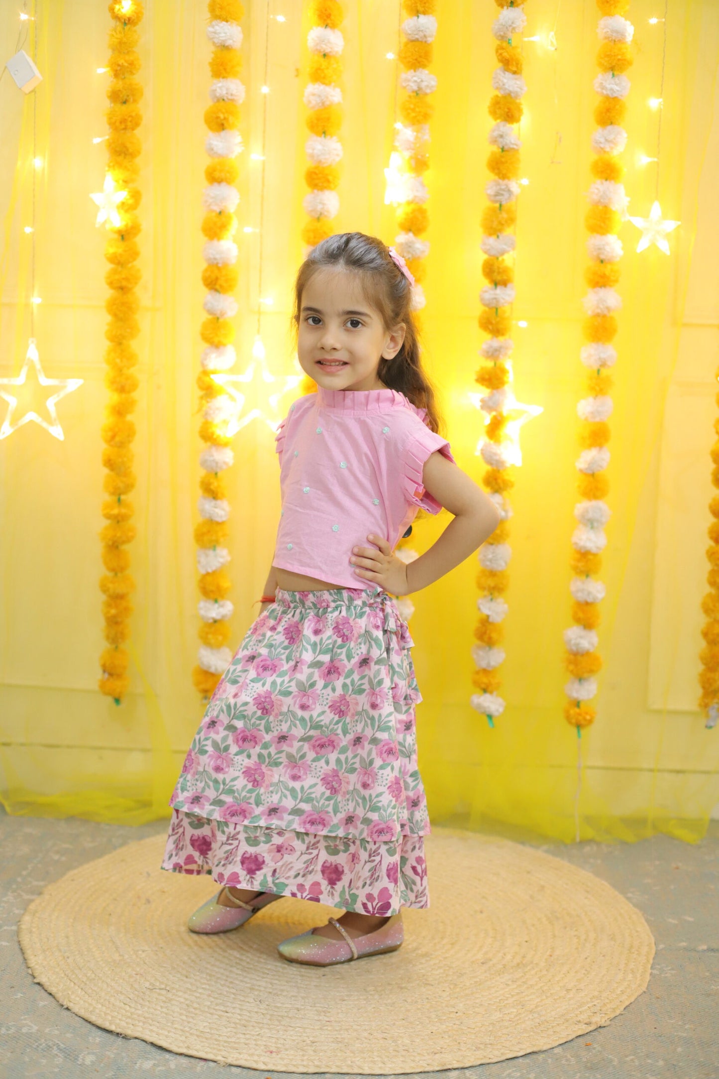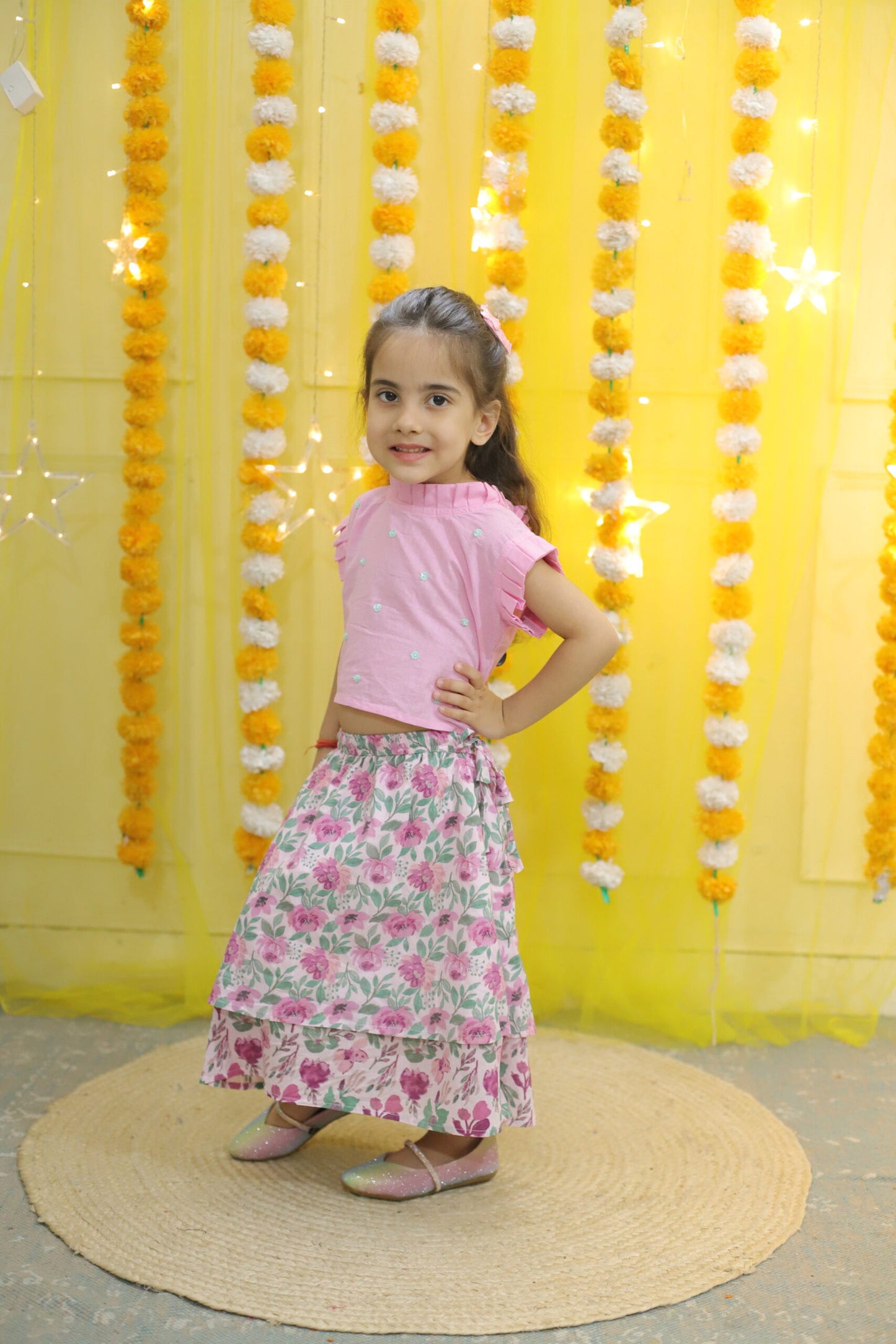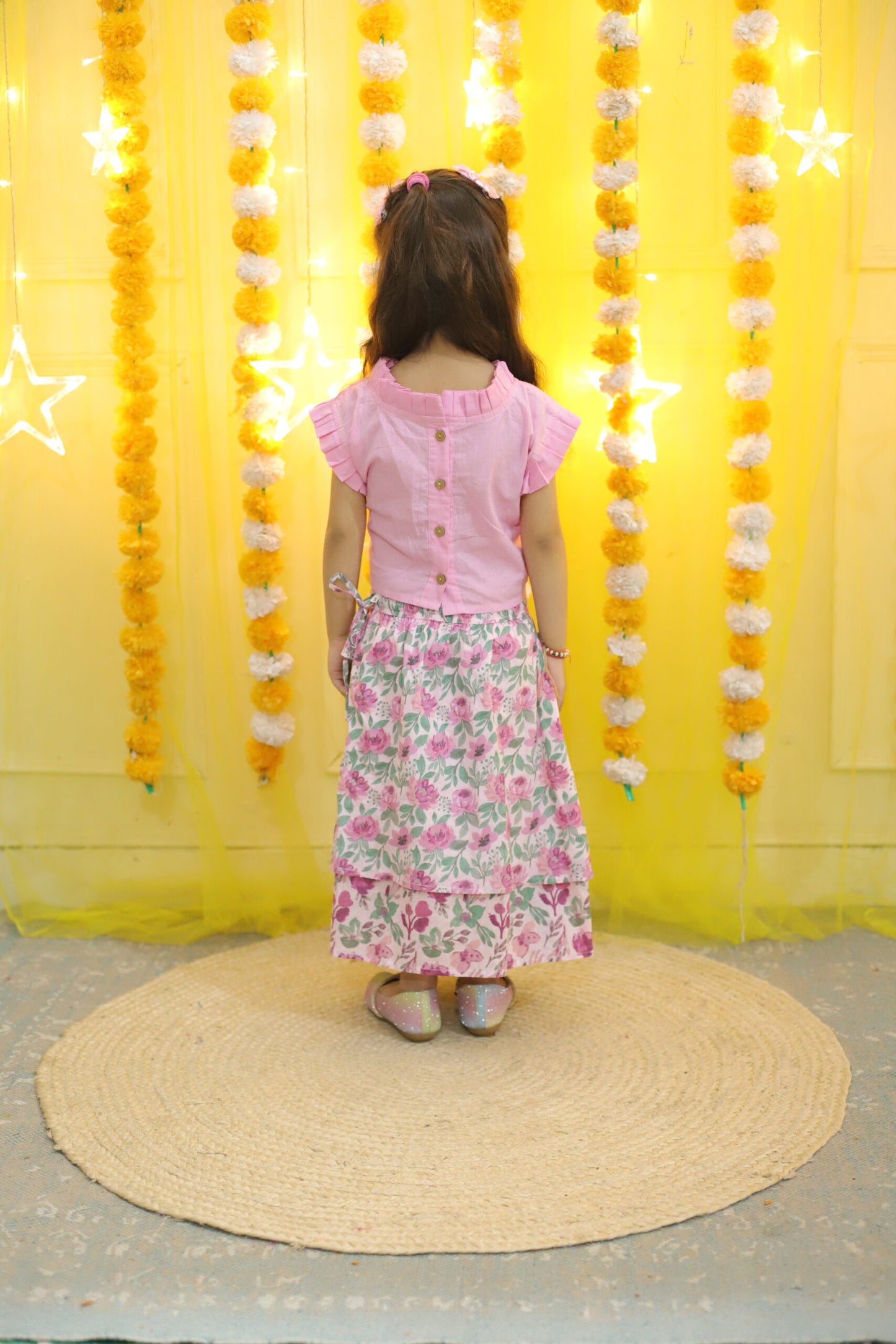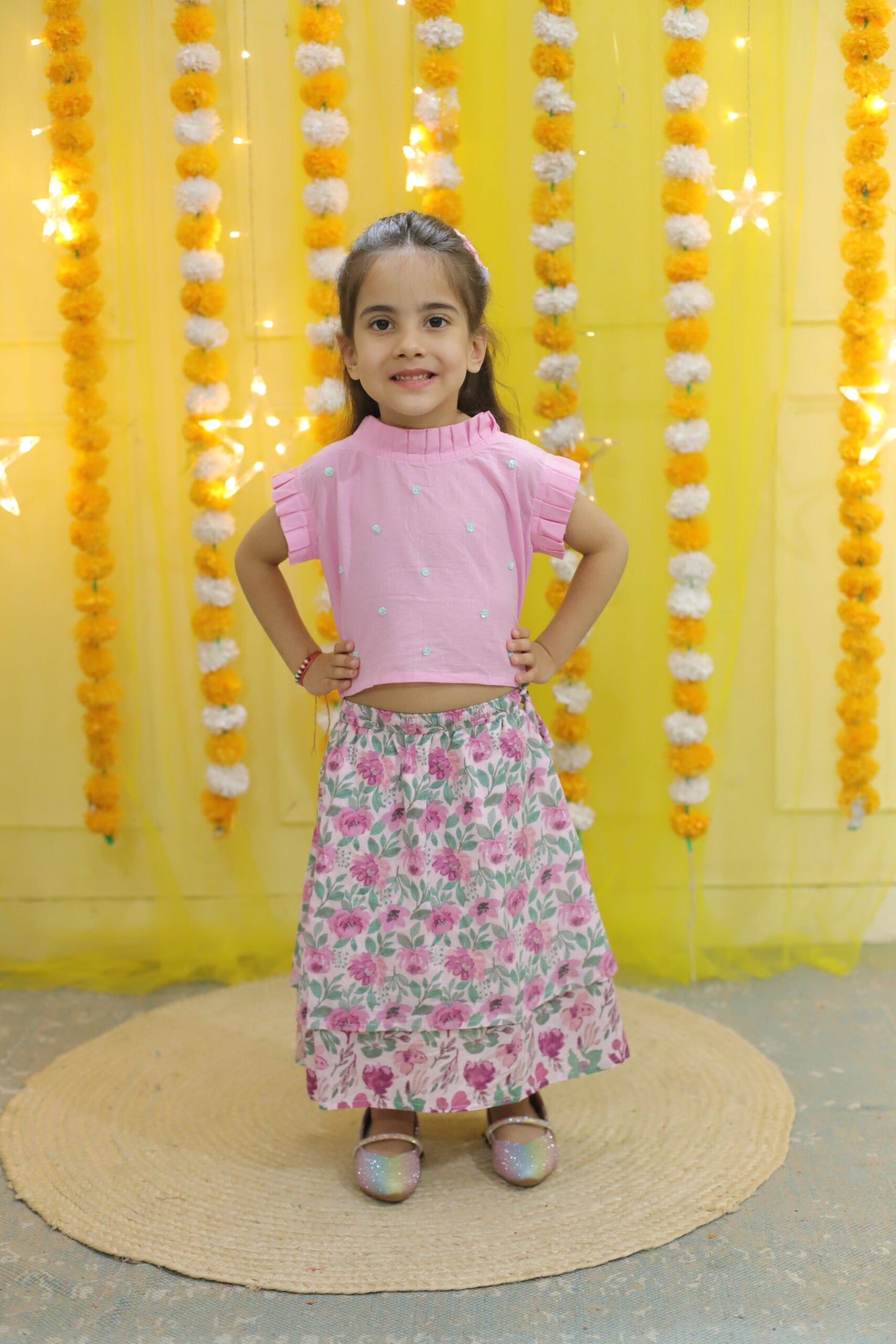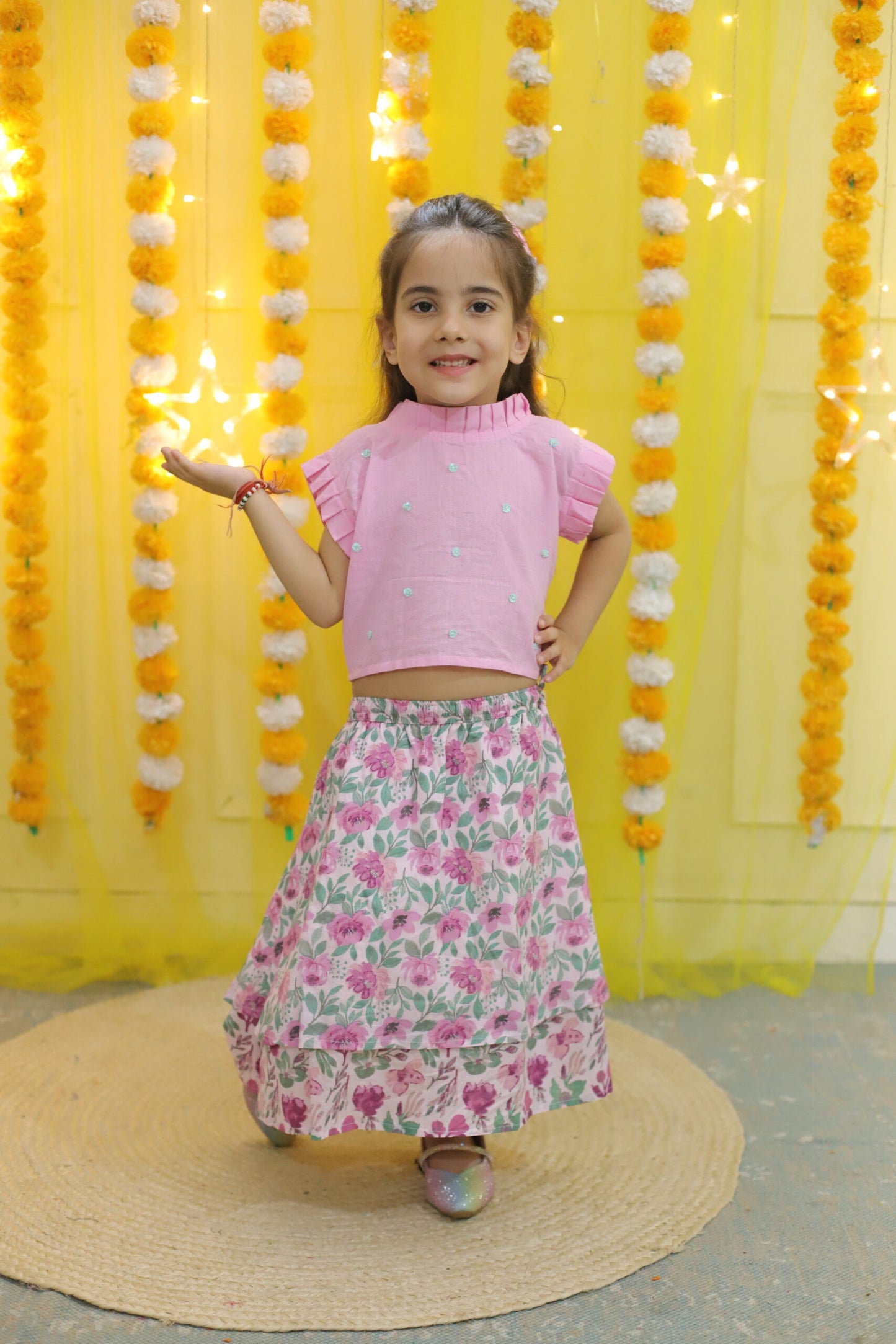 Pure Cotton Pink Crop Top with Lehenga Skirt